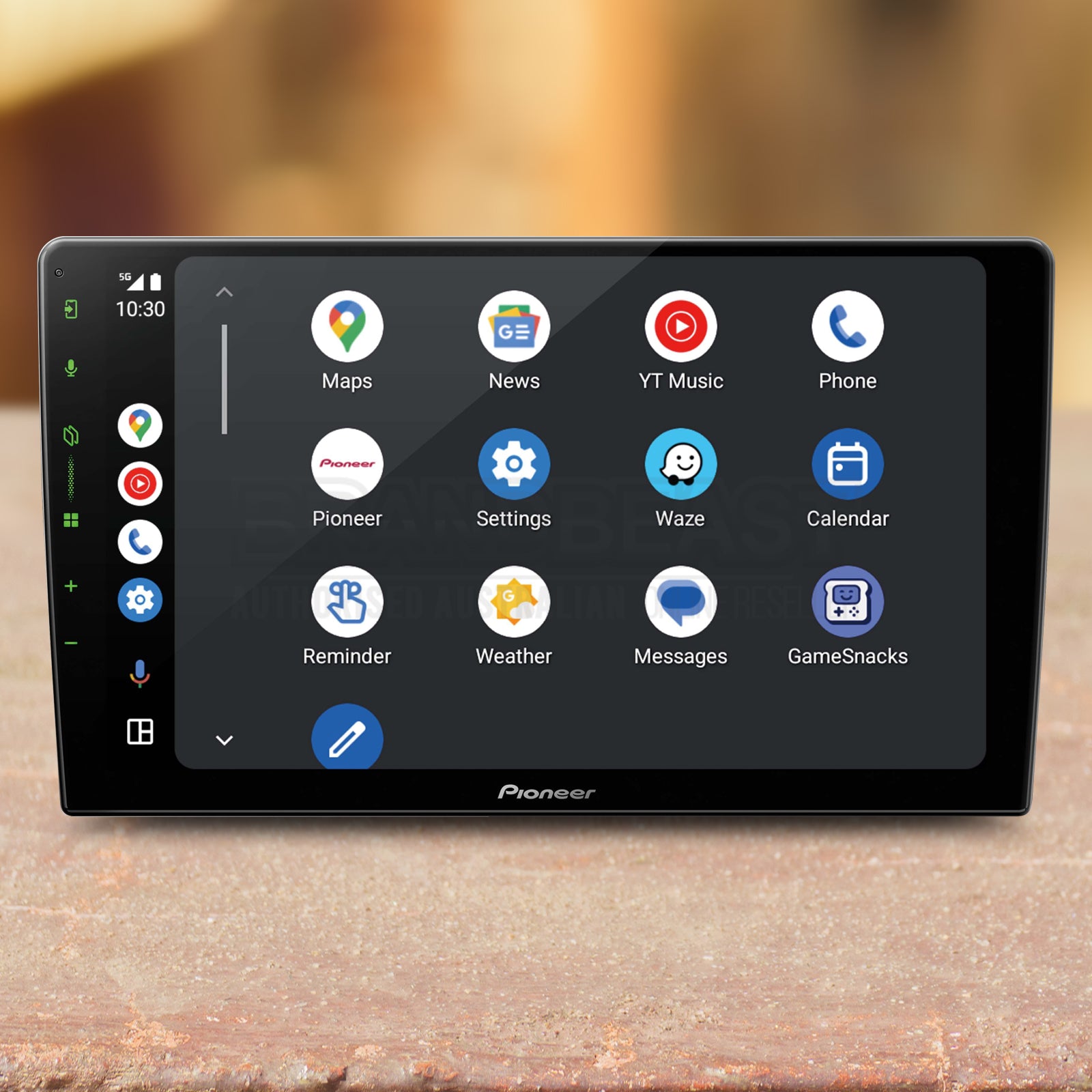 *To use Android Auto on your car display, you’ll need an Android phone running Android 8 or higher, an active data plan, and the Android Auto app. To wirelessly use Android Auto on your car display, you need a compatible Android smartphone with an active data plan. You can check which smartphones are compatible at g.co/androidauto/requirements. Some features and devices may not be available in all countries. Subject to availability. Availability of non-Pioneer content and services, including apps and connectivity, may change without notice due to changes in operating systems, firmware, or app versions; changes to, restrictions on or discontinuation of the service or service plans; non-Pioneer hardware changes; or other events.