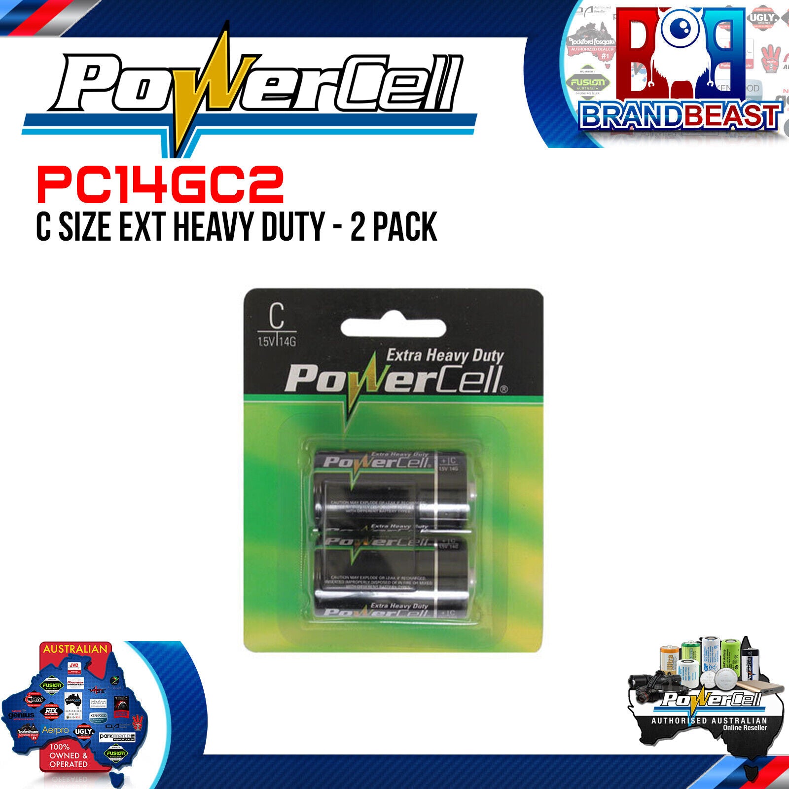 1.5V Extra heavy duty C size batteries Diameter: 26.2mm Length: 50mm Pack size: 2 per pack Packaging: Hang card with hang hole.