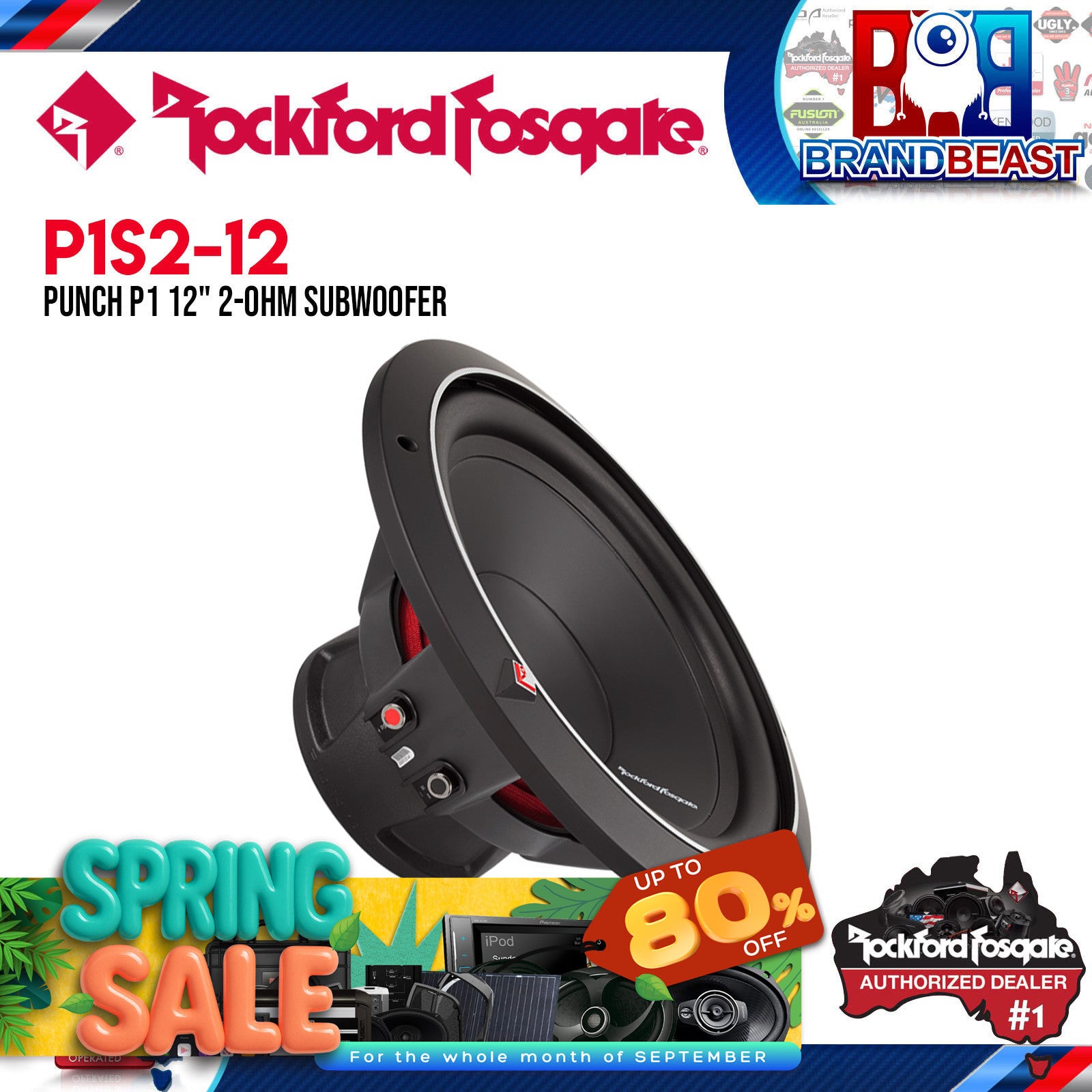 Rockford Fosgate P1 12” is the first in a family of famous “Punch” subwoofers. The P1S2-12 features a 2-Ohm voice coil, 250 Watts RMS power handling, and can accommodate a grille insert using the included soft touch ABS trim ring. Rockford Fosgate P1 12" is the first in a family of world-famous subwoofers called "The Punch".