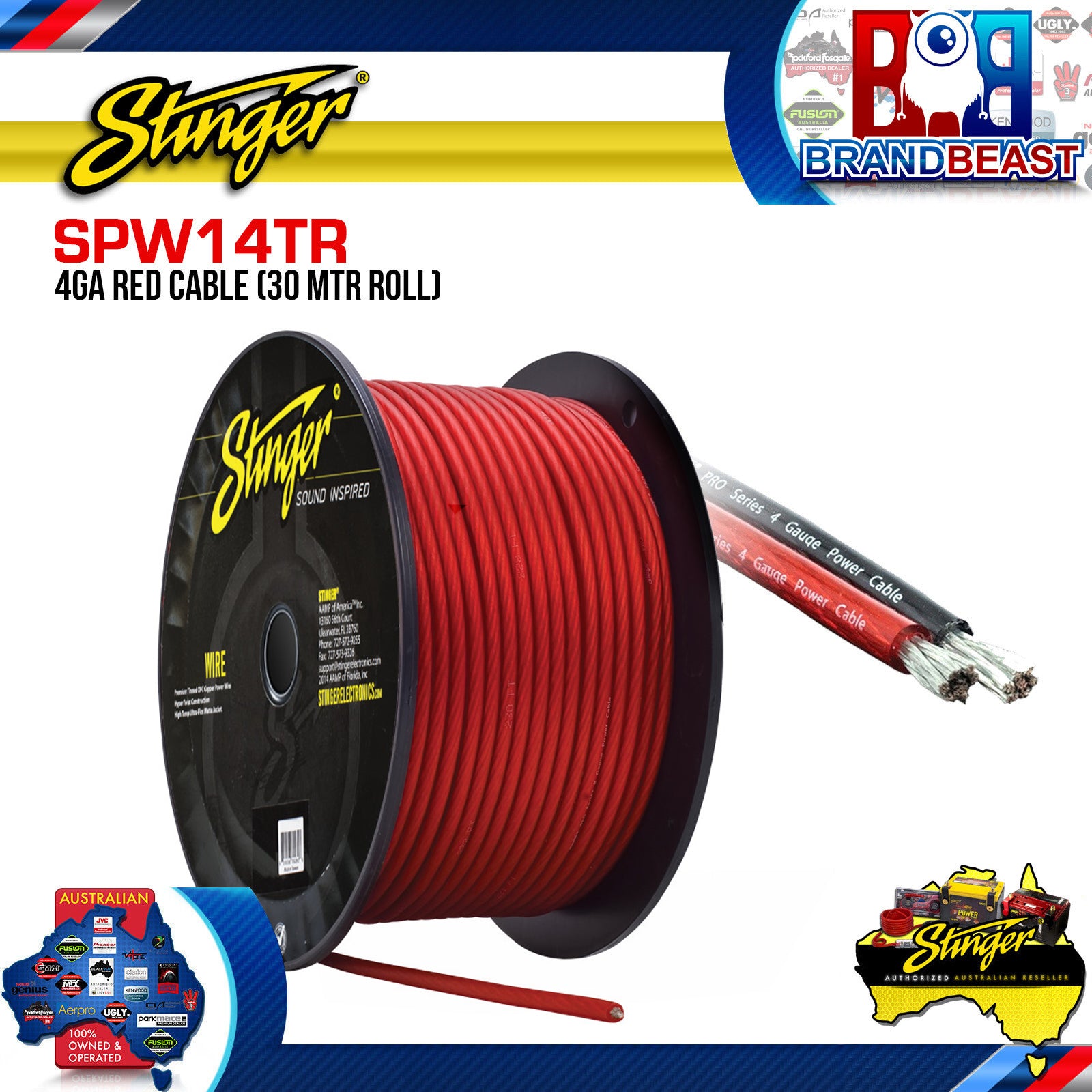 Stinger SPW14TR 4GA Red Cable Stinger power wire incorporates high strand counts of finely stranded OFC (Oxygen Free Copper) and high-quality matte PVC insulation that is oil and extreme temperature resistant. All of this combines to create power wire that is extremely flexible with very low resistance, but yet durable enough to hold up to the extremes of the automotive environment with the best power handling you can find. Features: