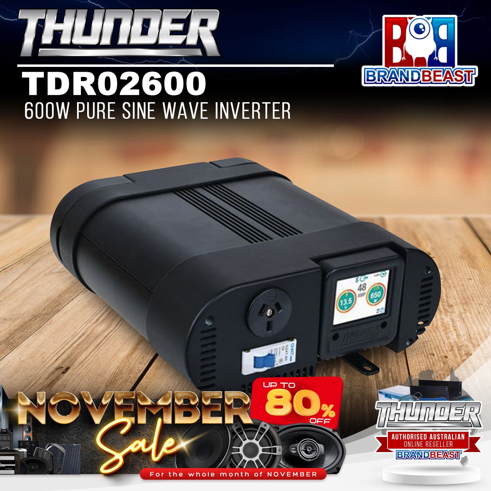 These intelligent devices convert the DC current from your vehicles battery into AC current giving you access to the same type of 240V power you get at home. The Thunder inverters include overload, short circuit and over-temperature protection and load-controlled cooling fan, which is engaged when power consumption reaches a certain level preventing further damage to your battery. Whether you are looking for a small inverter to run something from your car or camper trailer, or you want to power a range of appliances from your boat, the Thunder 600/1000/2000W inverters have got you covered.