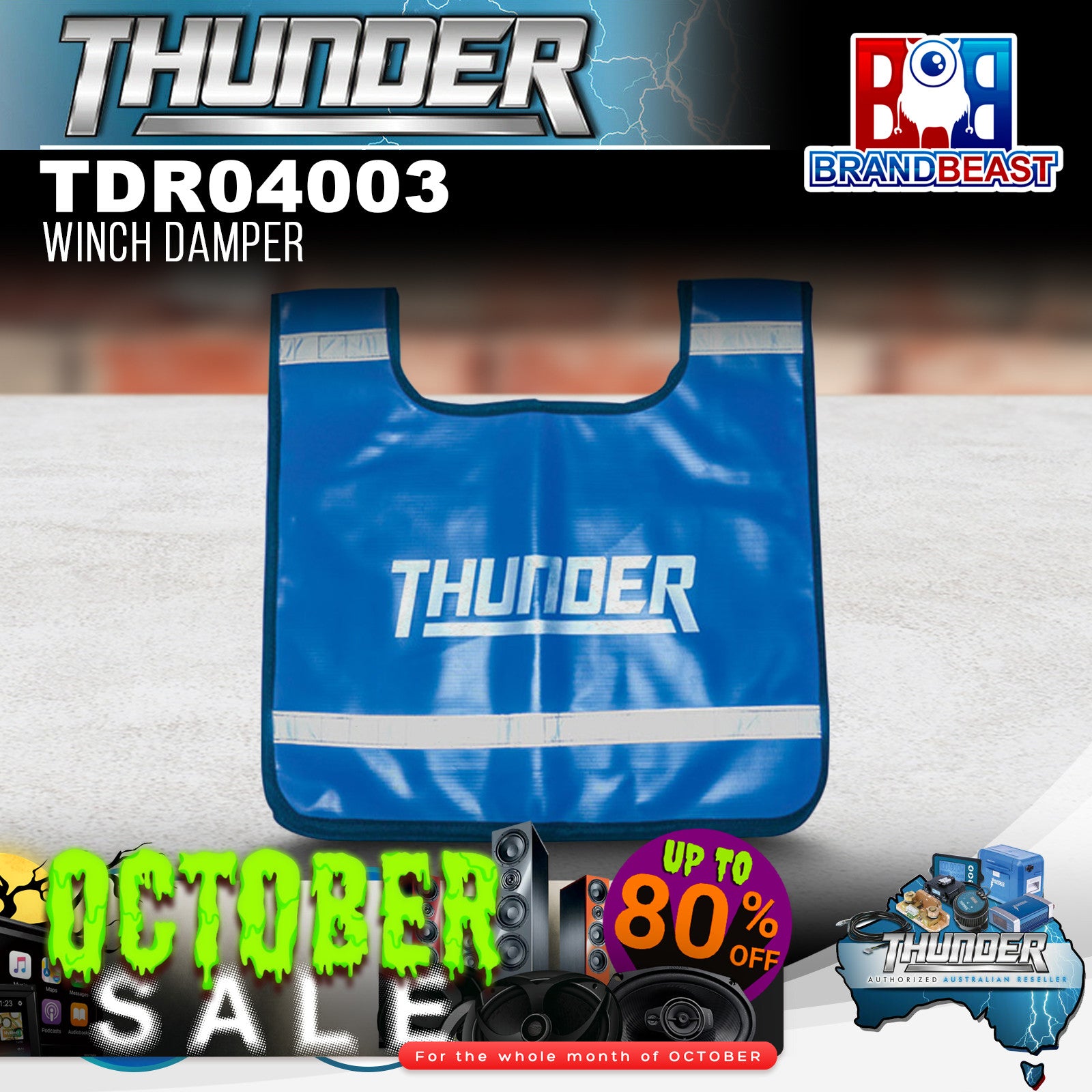 In effect this means the cable will drop to the ground instead of flying back into a vehicle or person. It has long velcro strips to hold it in place, reflective strips for increased visibility and weighs 1.1kg, which meets 4wd competition standards. Confidently approach your next adventure knowing you can safely get out of any difficult situation with the thunder recovery range. Offering a comprehensive suite of products including winches and accessories, recovery straps and a complete recovery kit, thunder is the perfect 4wd companion for any weekend escape. Note: Held in place on the rope with velcro tape.