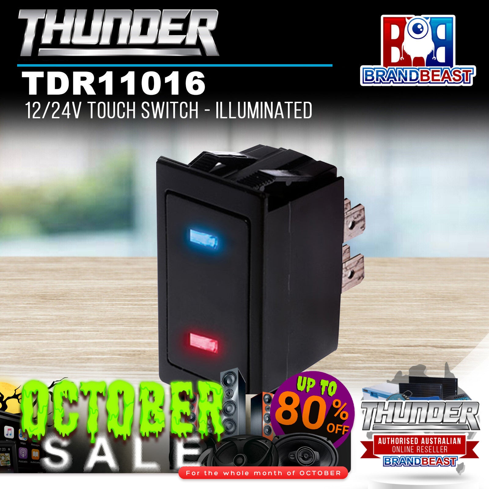 Thunder touch switches are hard-wearing, solid-state switches designed to suit standard rocker panel inserts. Illuminated panels clearly indicate whether the unit is in use, with the USB sockets suitable for charging smartphones and tablets.
