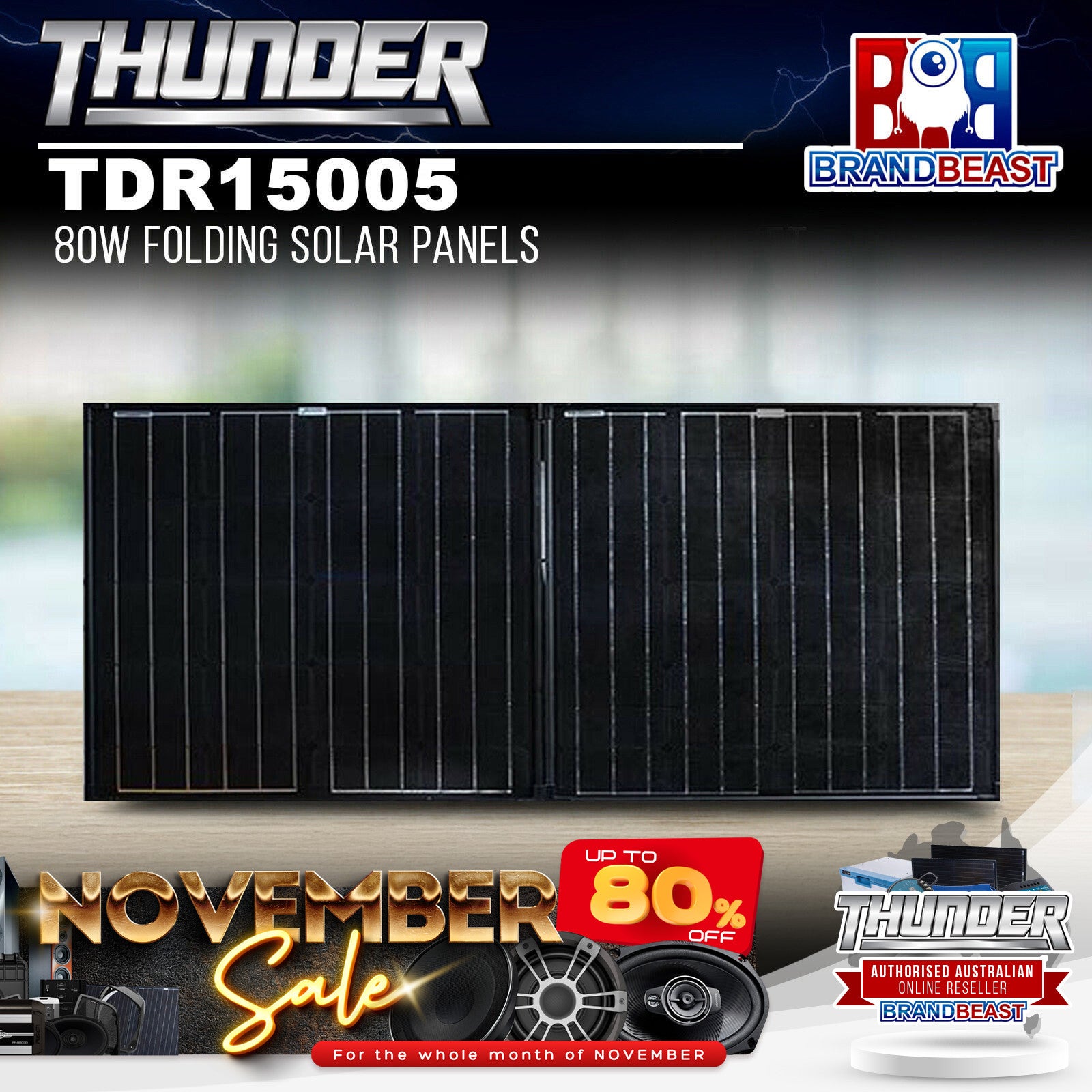 With the increasing popularity of free camping and the plethora of electronic gadgets being relied on during these getaways, constant, reliable, and portable power is more necessary than ever and solar power offers a quieter, greener alternative that's seeing more and more people shifting towards solar as a power source. The Thunder range of solar panels is made of high-quality monocrystalline solar cells, providing maximum efficiency and longevity. Thunder solar panels ensure you have a dependable source of power without occupying excessive space or polluting that peaceful camping experience with excess noise. Able to collapse to almost half its size and conveniently fold into a portable carry case, the Thunder TDR15005 80W Folding Solar Panel Kit can be used anywhere and easily relocated for maximum sun exposure. Also included is a heavy-duty 6mm cable to reduce voltage drop, as well as a solar regulator making them ready to clip straight onto the battery.