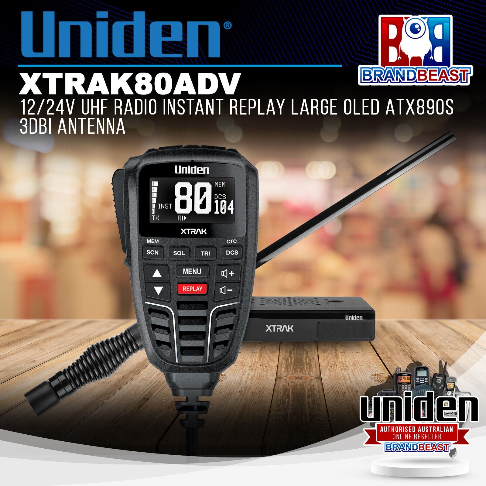 Uniden 12/24V UHF Radio Instant Replay Large OLED ATX890s 3dBiAntenna: The XTRAK Adventure Pack includes an XTRAK 80 UHF Radio and an ATX890BKS Antenna